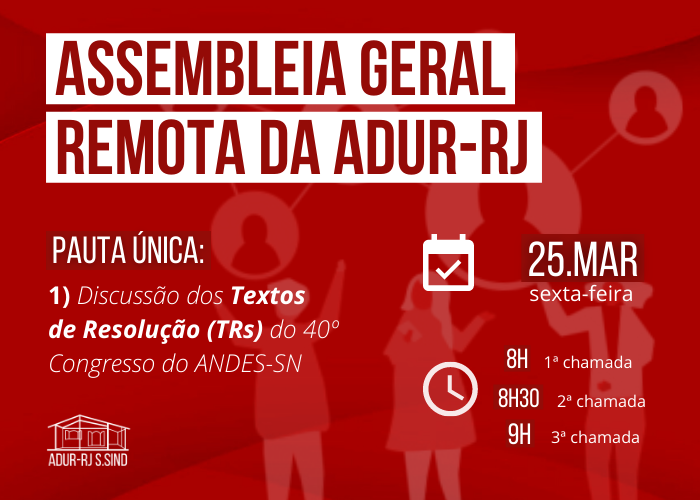 25/03: Assembleia Geral Remota da ADUR-RJ!
