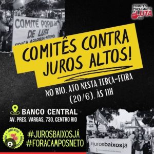 ADUR apoia protesto contra os juros altos