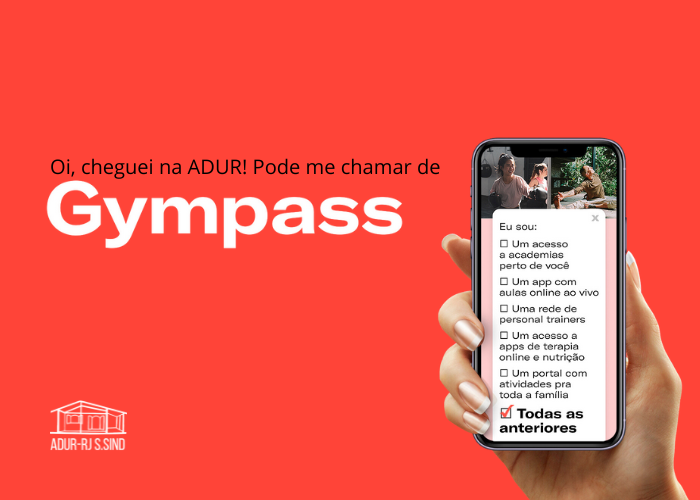 As associadas e os associados da ADUR contam agora com acesso à plataforma Gympass. O serviço de bem-estar corporativo reúne mais de 25 mil academias parceiras no Brasil, em mais de 10 países, além de aplicativos que oferecem serviços de nutrição, saúde mental, hábitos saudáveis, entre outros.