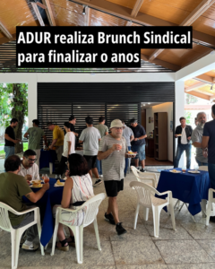 Para celebrar coletivamente um ano de lutas e conquistas e trocar boas energias para o próximo ciclo, a ADUR realizou hoje, no Centro de Convivência do sindicato, um Brunch Sindical. O evento reuniu dezenas de docentes em meio a tortas salgadas, empadão, salgadinhos, patês, bolos, frutas, sucos e refrigerantes.