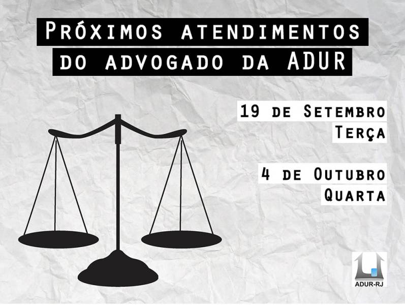A nova assessoria jurídica da ADUR já está atuando. O atendimento do advogado acontece presencialmente na sede do sindicato a cada 15 dias. Para se reunir com o Dr Gustavo Berner é preciso marcar um horário com a secretária da ADUR. Lembramos que nossos telefones são 3787-8464 e 2682-1379 e funcionamos de segunda à quinta, de 8h às 18h e às sextas-feiras de 8h às 17h.