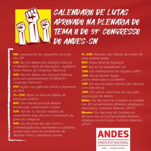 Confira calendário de Lutas aprovado na Plenária do Tema II do 39° Congresso do Andes-SN: