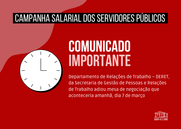 Ainda não foi apresentada uma nova data para a próxima reunião de negociação. O primeiro índice apresentado pelo governo, de apenas 7,8% foi rejeitado integralmente pelos servidores. Importante destacar, ainda, que o ANDES-SN está compondo a mesa de negociação juntamente com o Fonasefe, visando a unidade do setor público.