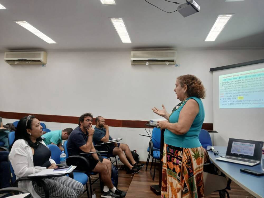 Na manhã do dia 20 de junho, compondo o planejamento da disciplina História e Política da Educação Brasileira, do PPGEA/UFRRJ, foi realizada uma palestra pela professora Lucília Lino (UERJ e ANFOPE) sobre os impactos da política educacional na formação dos profissionais da educação. A mediação foi da professora Liz Paiva, Diretora da ADUR.