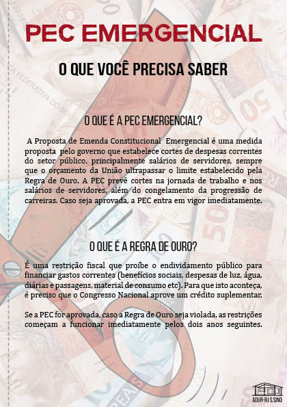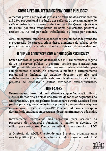 Confira o panfleto da ADUR-RJ sobre a PEC EmergencialADUR3 de dez. de 20191 min de leituraClique aqui para baixar a versão em PDF para impressão do panfleto.