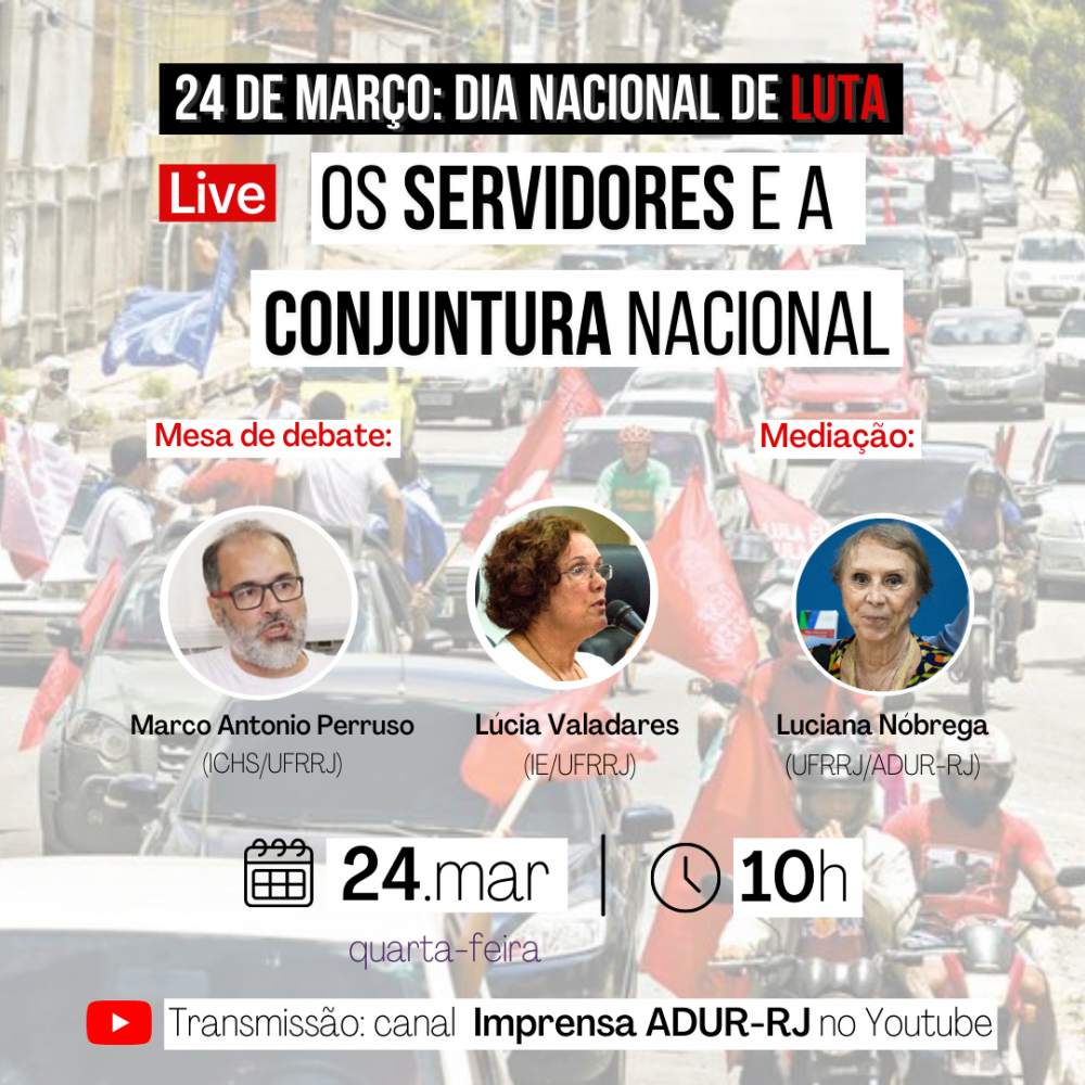 LIVE do Dia Nacional de Luta: "Os Servidores e a Conjuntura Nacional"ADUR23 de mar. de 20211 min de leituraParticipe do Dia Nacional de Luta, Mobilizações, Paralisação e Greve!