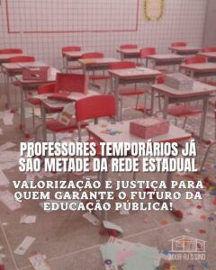 30 de setembro de 2025 📢A ADUR manifesta profunda preocupação com os dados recentemente divulgados sobre a contratação de professores temporários nas redes estaduais de ensino. O levantamento do Movimento Pessoas à Frente revela que metade dos docentes atua sem direitos básicos assegurados, como licença-maternidade, 13º salário, férias remuneradas, estabilidade e acesso ao piso nacional do magistério. Essa realidade não apenas desvaloriza o trabalho dos profissionais da educação, mas também compromete a qualidade do ensino oferecido à sociedade. 👩🏫👩🏿🏫A prática recorrente de recontratações sucessivas, que mantém professores por mais de uma década em regime temporário, é a expressão da normalização da precariedade. O Estado utiliza vínculos frágeis como estratégia de redução de custos, criando uma categoria de “professores de segunda classe”, mesmo quando desempenham as mesmas funções dos efetivos. Tal situação agrava a instabilidade financeira, fragiliza o vínculo pedagógico e afeta diretamente as condições de aprendizado dos estudantes. 📝É urgente que governos estaduais e o Congresso Nacional avancem na criação de um marco regulatório que assegure direitos mínimos aos trabalhadores temporários e estabeleça limites claros para a contratação por tempo determinado. A ADUR reafirma que não há educação pública de qualidade sem valorização da carreira docente, com garantias de dignidade, estabilidade e reconhecimento profissional. Defender os professores é defender o futuro da educação pública brasileira.
