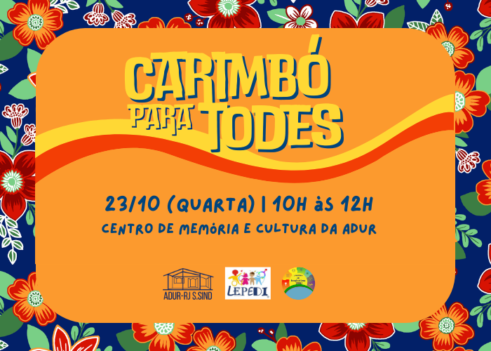 No dia 23 de outubro (quarta-feira), a ADUR receberá a oficina “Carimbó para Todes”, uma experiência inclusiva que celebra a cultura popular tradicional da região amazônica, especialmente do estado do Pará.