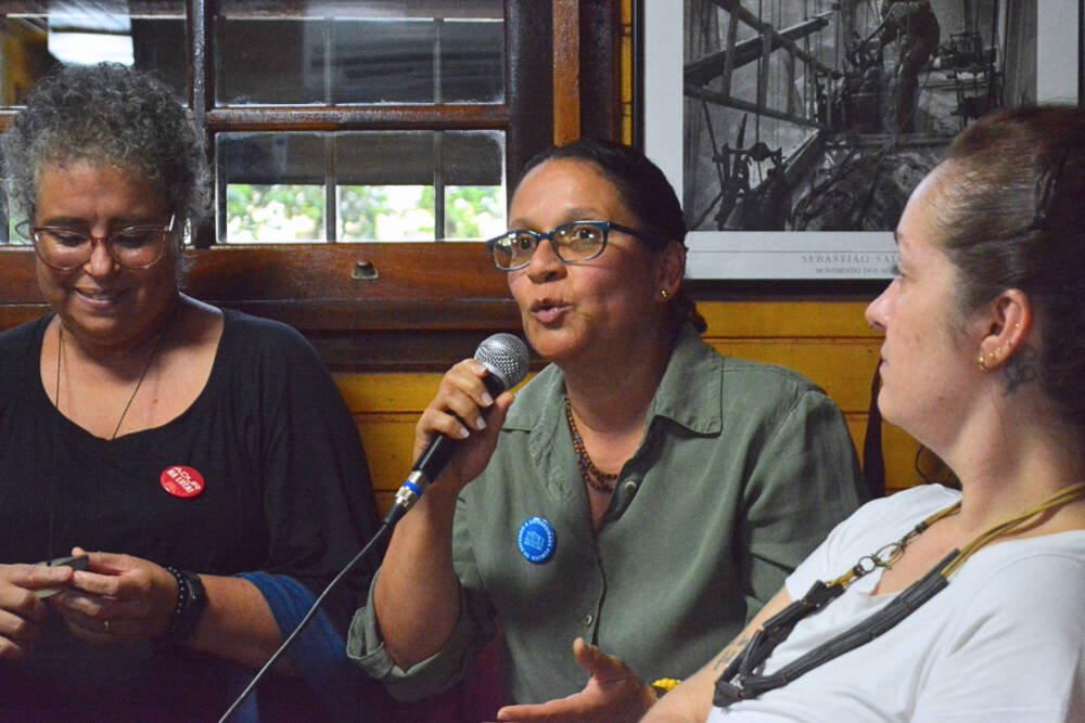 Durante a assembleia, comandada pela diretora Fabrícia Vellasquez, uma homenagem foi realizada para as diretoras da gestão anterior - Luciana Nóbrega, Lia Teixeira e Jacqueline Rocha pela dedicação e empenho na luta em defesa dos servidores públicos federais.