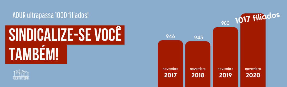 Com mais de 40 anos de história e uma trajetória marcada por uma forte atuação política e participação em importantes conquistas, a ADUR ultrapassa o número de 1000 professores filiados na atual gestão Resistência e Luta na Pluralidade. Este número demonstra que os docentes da UFRRJ acreditam, cada vez mais, no papel do sindicato para enfrentar os desafios que a conjuntura política tem colocado.