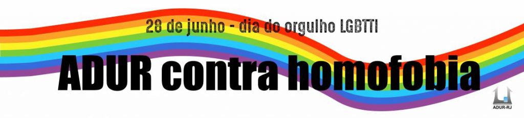 Por Stonewall, Orlando, Dandara e Diego continuaremos lutando para que a sociedade entenda todas as formas diversas e complexas de ser e de amar. No mês do orgulho LGBTTI, a ADUR se coloca contra a homofobia e contra todo tipo de opressão.