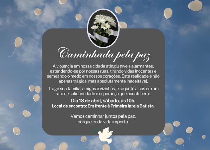 Este não será apenas um evento comum; será uma manifestação do nosso repúdio à violência e um clamor por dias mais seguros e pacíficos em nossa cidade.