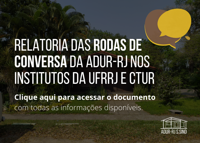 🗣️💬 A partir da realização das Rodas de Conversa nos Institutos e CTUR, a ADUR-RJ elaborou um material completo contendo a relatoria das reuniões com propostas e ações e a sistematização de todo o conteúdo que foi abordado nas Rodas, com discriminação de execução por período temporal e também pelos eixos. 📝 O documento com todas as informações está disponível em formato PDF no site da ADUR-RJ. 📲 📄 Clique aqui para acessar.