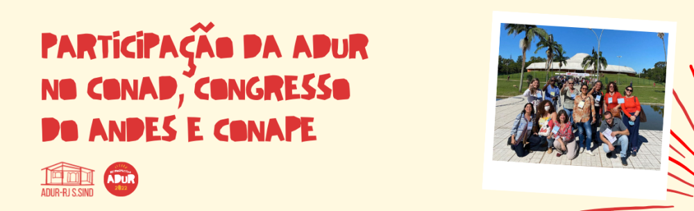 Compreendendo a importância de atuar de forma articulada com outras Associações Docentes e também com outras entidades da educação, neste ano de 2022, a ADUR participou de quatro grandes eventos: o 40º Congresso do ANDES, realizado em abril; o 65º Conad, em julho; o 14º Conad Extraordinário em novembro; e também esteve presente na II Conferência Nacional Popular de Educação, que aconteceu na mesma data que o 65º Conad, em julho.