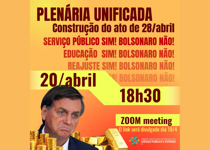 ✊🏽 Seguindo o calendário unificado de lutas em defesa de serviços públicos como educação e saúde e contra o governo genocida de Bolsonaro, acontecerá, amanhã, dia 20 de abril, às 18h30, uma plenária unificada para a construção de um grande ato de rua no próximo dia 28 de abril.